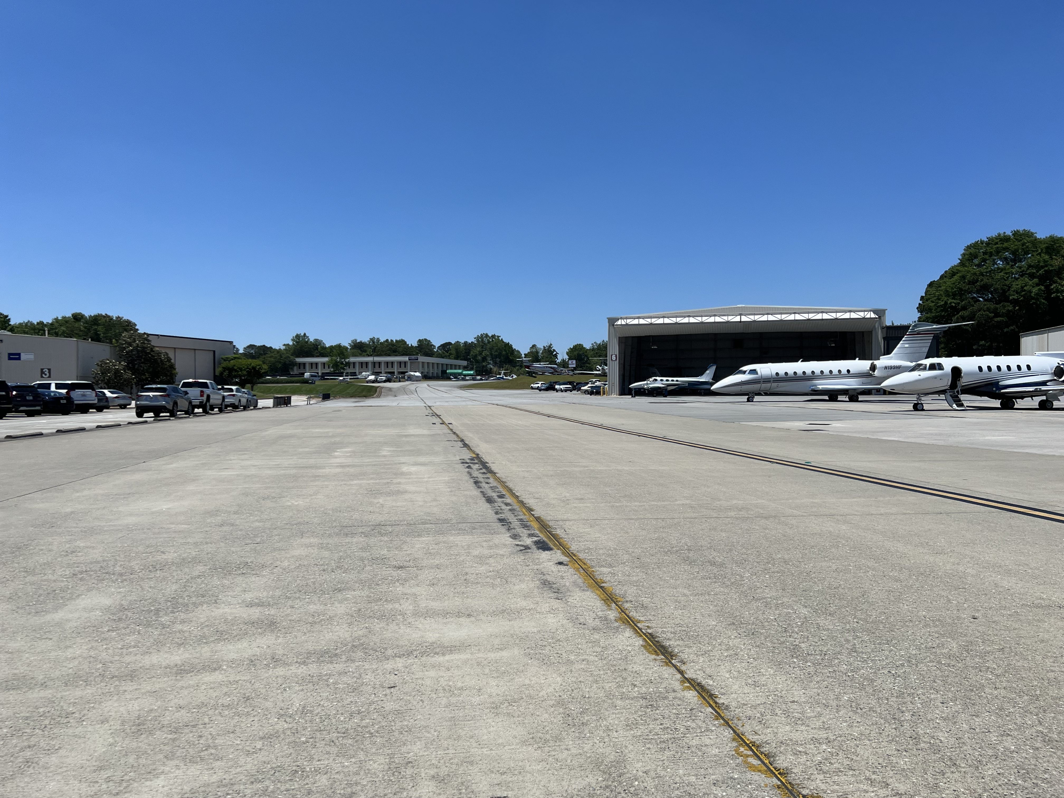 Departed KTYS under VMC conditions on an IFR flight plan around 10:15am. Expected route was SOT (Snowbird VOR) to BZM (Hickory VOR) to GSO (Greensboro VOR) to KRDU. Once I arrived in the KRDU terminal area, the Raleigh-Durham Approach was very busy with commercial airliners flying the ILS RWY 23L approach (RWY 23R was closed for construction), so ATC flew me in a right downwind box while he landed three commercial jets. When I was finally turned and cleared for the ILS RWY 23L approach I proceeded to fly the approach to a full stop landing and taxi'd to the Signature FBO ramp. Even with early communications with Signature about the desire for a hangar during my stay in Durham, they were fairly full. Next door, the TAC Air FBO had plenty of space, so I coordinated with them to have N977JW moved to their hangar. It was a good thing I had the plane hangared, because the mother of all convective storms moved through the area producing hail and tornadoes along with a fair amount of wind. I stayed in Durham an extra two days to allow the convective storm to pass through the area. TAC Air FBO charged me $145 per day for 4 days, or $580 to hangar the plane over the weekend.